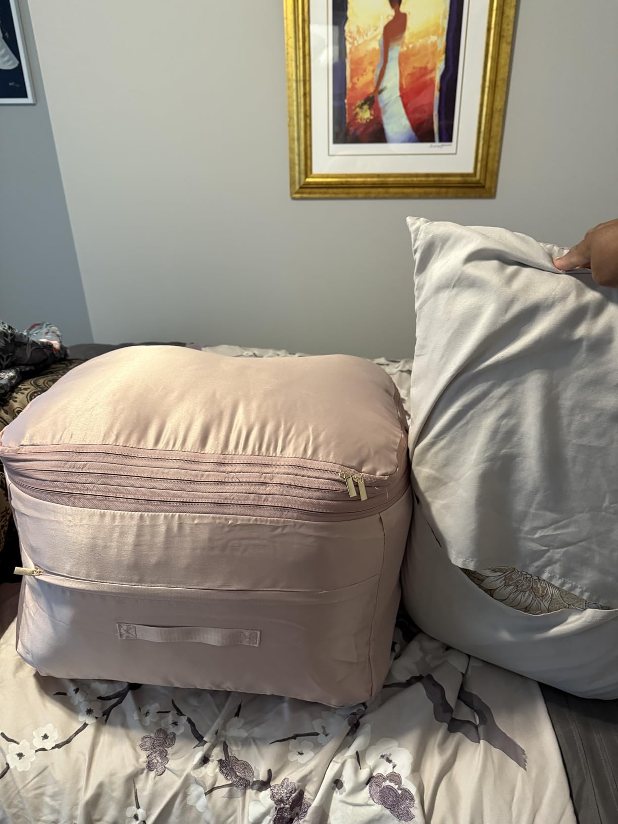 Este organizador es una maravilla. Metí mi edredón de invierno y varias mantas, cerré la cremallera y ¡magia! Todo quedó comprimido a la mitad. Ya no tengo problemas de almacenamiento. Muy fácil de usar y resistente. ¡Lo recomiendo totalmente!